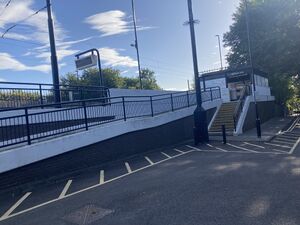 Bank Foot is a station on the Airport Branch on the Green line. The station features an open level crossing. Purpose built for Metro, it opened initially as a single platform terminus station in 1981, before being rebuilt as a two platform through station in 1991 when the two-stop extension to Airport was built.
